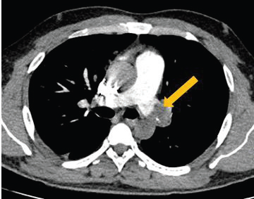 left main pulmonary artery, consistent with pulmonary embolism.
