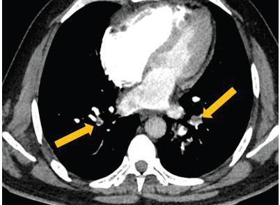 both lungs, consistent with bilateral pulmonary embolism. The total