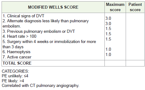 keeping with pulmonary embolism. The total modified Wells score is