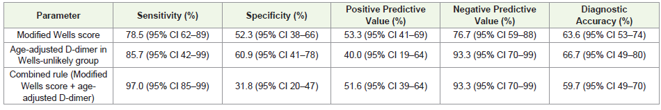 diagnostic performance of Modified Wells score and age-adjusted