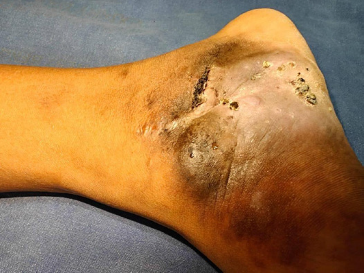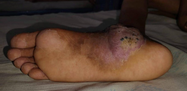 the plantar surface. Surrounding hyperpigmentation and surface irregularity
