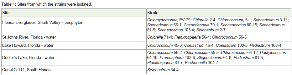 Twenty seven strains of green algae from the Florida aquatic habitats were screened for their ability to accumulate lipids. In addition, Botryococcus