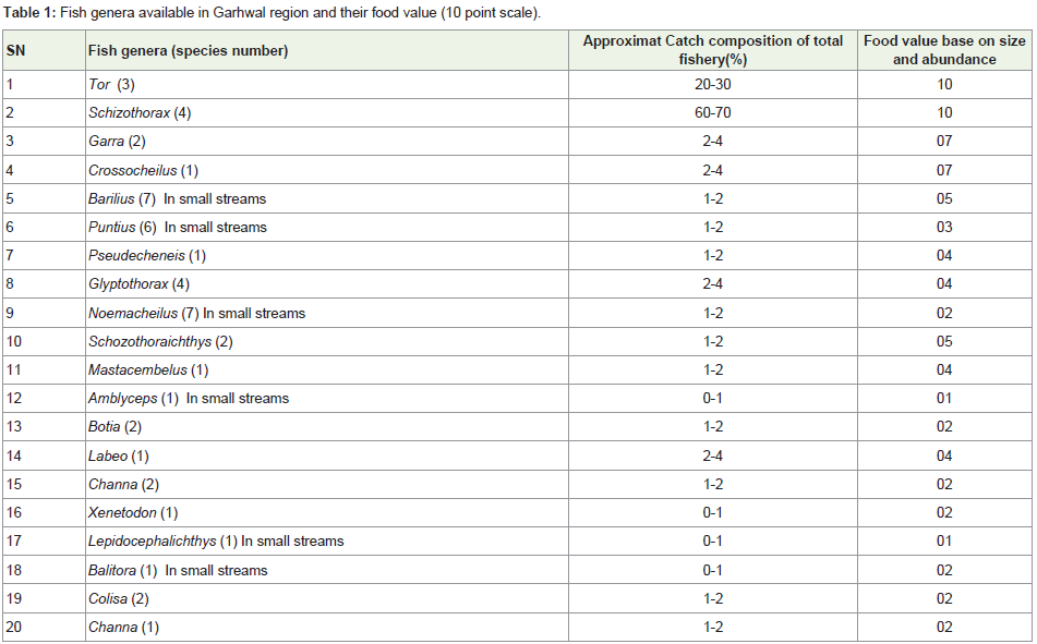 presented in Table 1. Schizothorax sp (snow trout) is the major
