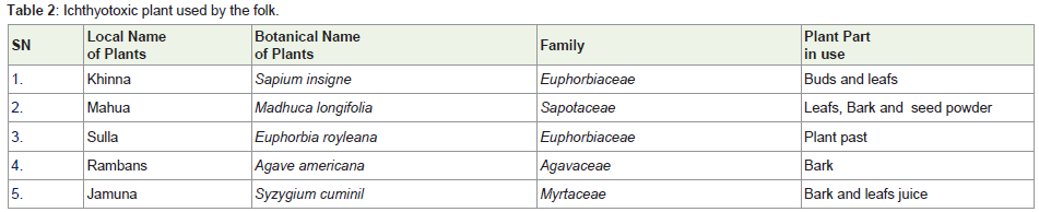toxic plants Table 2. This is doing great loss to fishery. Some