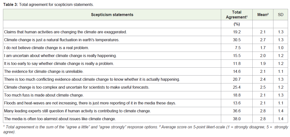scepticism scores was attributable to knowledge of climate change in