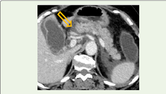 Figure 2:Axial pancreatic-phase contrast-enhanced CT image