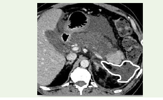 retroperitoneal spaces, representing a severe case described in the Results