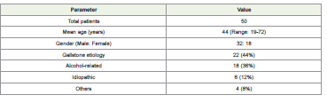 Gallstone disease was the most common etiology (44%), followed by