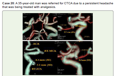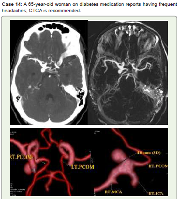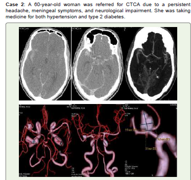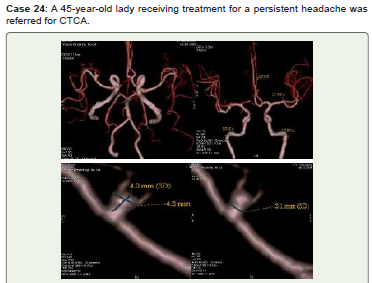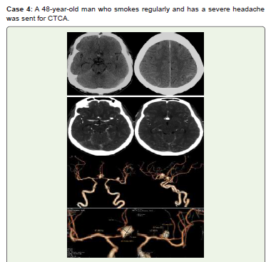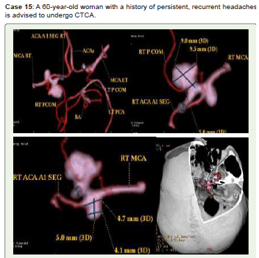 Conclusion: Recent years have seen a significant change in the diagnosis and treatment of cerebral aneurysms. With CTCA, radiologists can accurately describe pertinent results, such as the risk of aneurysm rupture, and reliably and noninvasively identify the majority of intracranial aneurysms. Additionally, it helps identify high-risk groups and recommend screening. Treatment is becoming safer and more efficient thanks to nonoperative endovascular treatments, which are minimally invasive operations carried out inside blood vessels.
