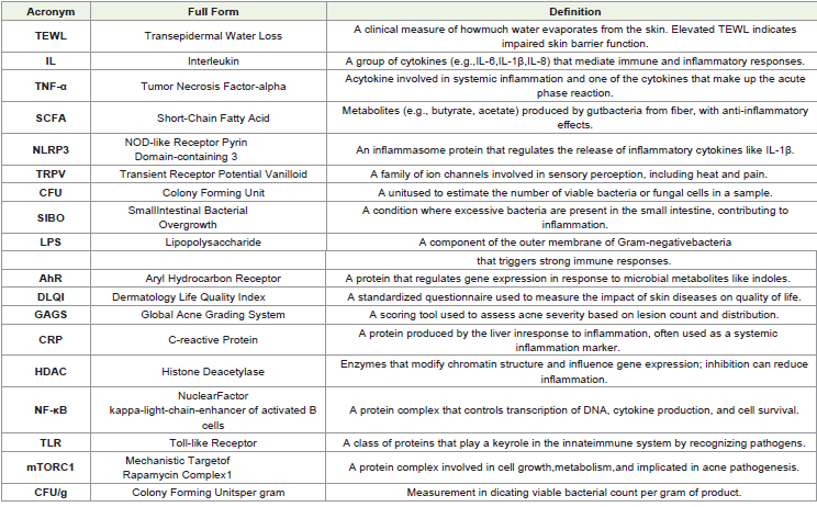 Keywords: Probiotics; Prebiotics; Acne; Rosacea; Gut-Skin Axis; Inflammation