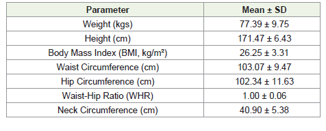 The mean BMI in this study (26.25 ± 3.31 kg/m²) placed the