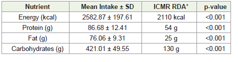 *RDA values based on ICMR-NIN guidelines for moderately active Indian adult males [15].