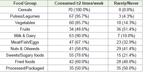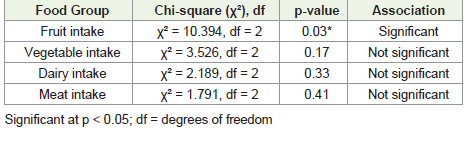 differences (p < 0.001 for all). [Table 4] seen for nuts and oilseeds
