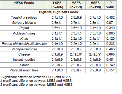 Methods: A cross-sectional study was conducted among 1,035 adolescent girls aged 13–18 years who were selected through random and purposive sampling from four zones of Mumbai (North, South, East, and West). Participants were categorized as per their socioeconomic status (as per the Kuppuswamy scale). Data on HFSS food consumption were collected using a structured food frequency questionnaire and analysed using SPSS version 25.0.