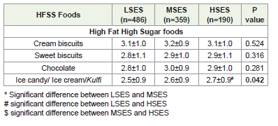 Table 4:Socioeconomic disparities in the frequency Intake of High-fat Highsugar