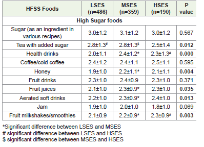 Table 5:Socioeconomic disparities in the frequency Intake of High-sugar Foods