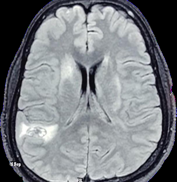 Figure 1:Well defined area of T2/FLAIR of heterogeneous hyper-intensity