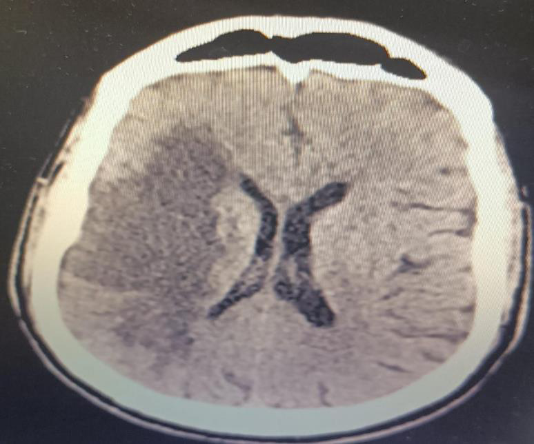 Figure 2:CT brain- showing wedge shaped hypodensity involving right