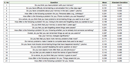 Keywords: Subjective cognitive decline; dementia precursor; SCD Q21 scale