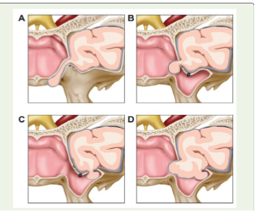 to her niation of the temporal lobe into the sphenoid sinus. While