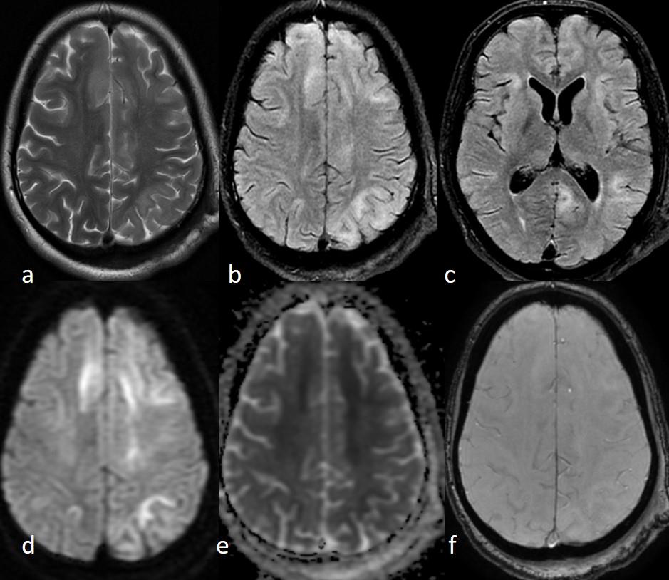 patchy diffusion restriction in some of the lesions. No foci of susceptibility are