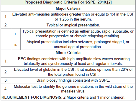 and clinico-radiological evidences the diagnosis of SSPE was made and