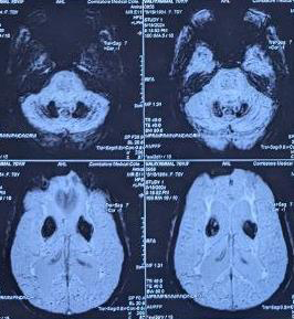 Figure 2: MRI -SWI revealing bilateral symmetric hypointense signals (dark