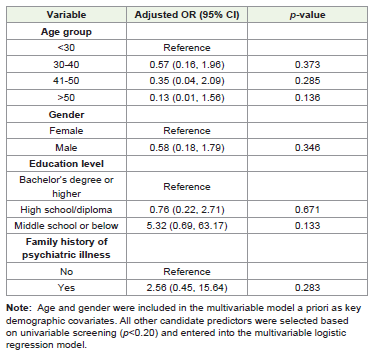 A multivariable logistic regression model was used to identify