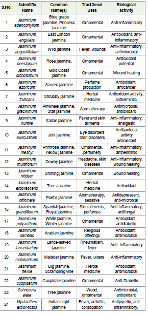 Table 1:Traditionally and Therapeutically Valuable Jasminum