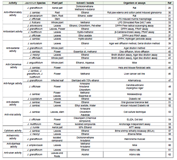 Jasminum species have revealed their diverse biological activities,