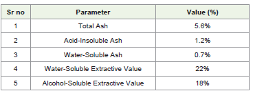 water-soluble ash) and extractive values (water-soluble and alcohol soluble