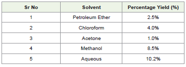 Table 2:Percentage yield of different extracts by successive solvent extraction