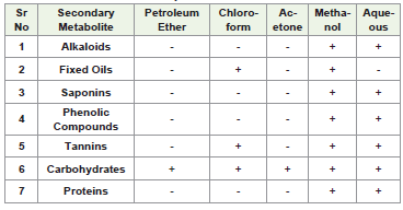 extractive values are also provided in [Table 1] .Phytochemical screening: