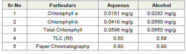 the aqueous extract. Total chlorophyll content was found to be 0.0650