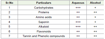 extracts. Carbohydrates, saponins, and alkaloids were abundantly