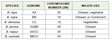 species—B.rapa (AA, 2n=20), B. nigra (BB, 2n=16), and B.oleracea
