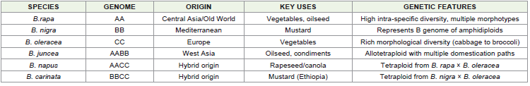 The genus Brassica comprises some of the most economically important oilseed and vegetable crops cultivated worldwide. These crops contribute significantly to global food security, nutrition, and agricultural sustainability. The present paper provides a comprehensive synthesis of the origin, geographical